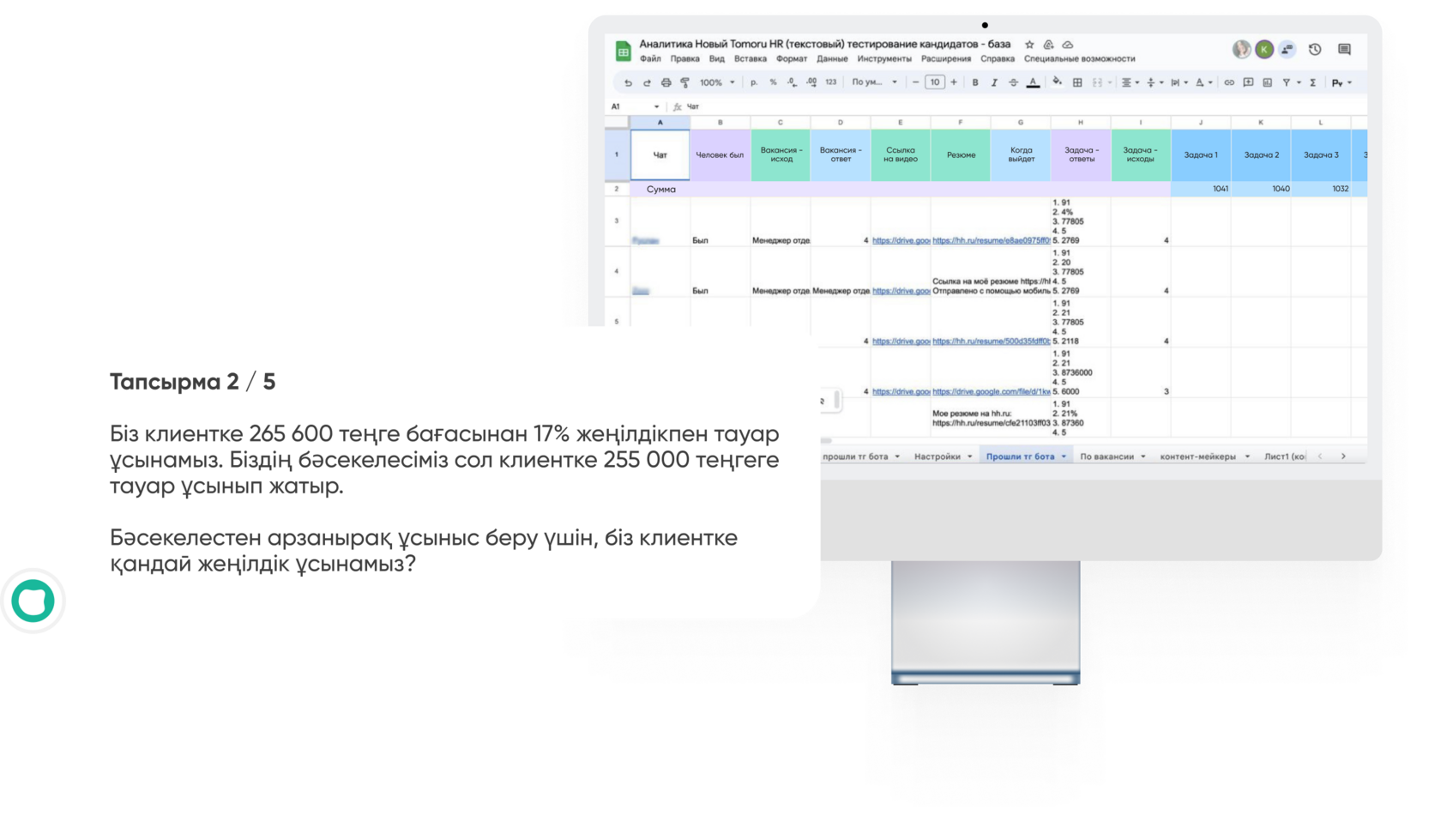 Қазақстандағы көптеген компаниялар біз ұсынатын персоналды жұмысқа бейімдеу бағдарламаларын бағалай алды. Егер сіз қаласаңыз, бұл қызмет сізге сәйкес келеді: • жаңа қызметкерлерді ұжымға бейімдеу және біріктіру процесін жеделдету; • сіздің компанияңызда сынақ кезеңінде айтарлықтай кадрлық тұрақсыздық орын алса; • жаңа қызметкерлер тапсырмаларды тиімді орындай бастағанға дейін көп уақыт қажет; • жаңа кадрлар бейімделу кезеңінде көптеген қателіктер жібереді; • командаға адалдықты арттыру, ұжымды біріктіру және жаңа кадрларды тартуды арттыру қажет. Біздің ұсынысымызды пайдалану үшін бизнесіңіздің мақсаттары мен міндеттері туралы айтып беріңіз, біздің сарапшылар сәтті бастау және жаңа адамдарды компанияға біріктіру үшін ең жақсы шешімдерді таңдайды.